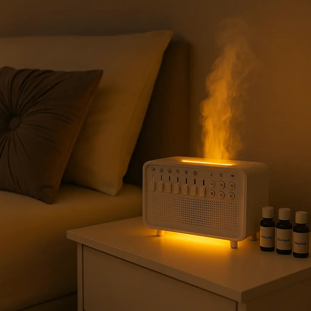 • 4 az 1-ben multifunkciós készülék: fehér zaj gép, éjjeli lámpa, aromadiffúzor és Bluetooth hangszóró egyben